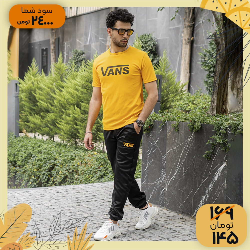 ست تیشرت شلوار مشکی زرد Vans مردانه مدل N200